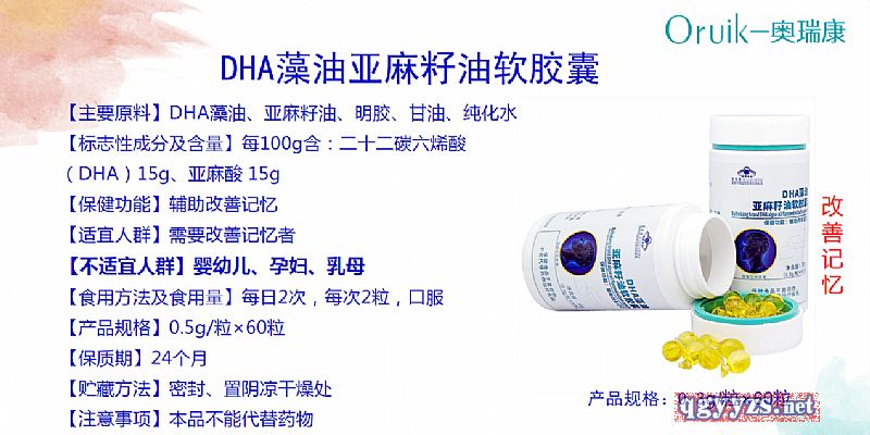 | 作用機(jī)理 | 【標(biāo)志性成分及含量】每100g含:二十二碳六烯酸(DHA)15g、亞麻酸 15g |