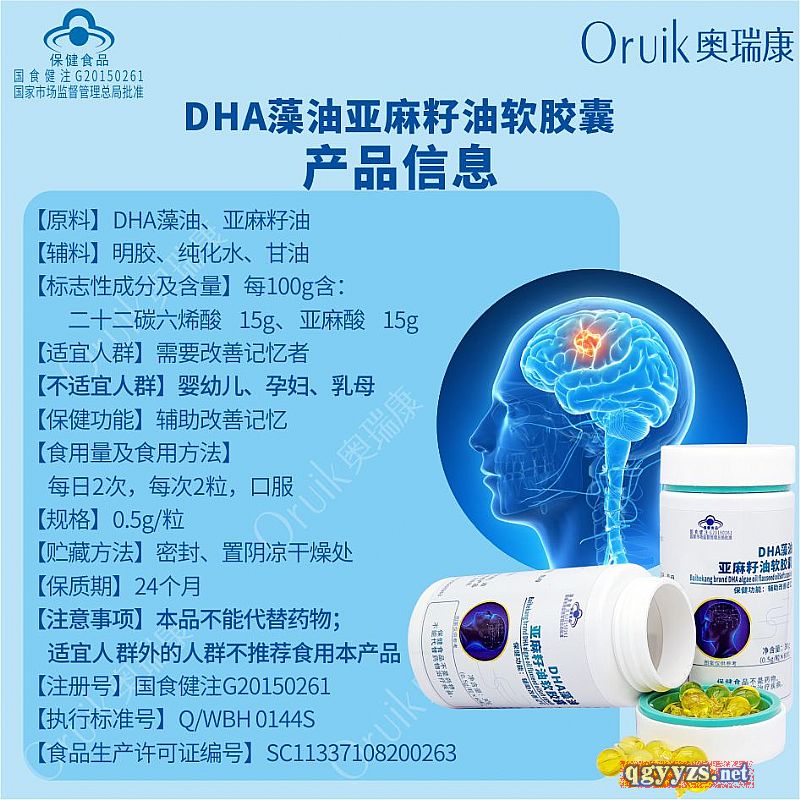 | 補(bǔ)充說(shuō)明 | 【原料】DHA藻油、亞麻籽油 【輔料】明膠、純化水、甘油 【標(biāo)志性成分及含量】每100g含:二十二碳六烯酸 15g、亞麻酸 15g 【適宜人群】需要改善記憶者 【不適宜人群】嬰幼兒、孕婦、乳母 【保健功能】輔助改善記憶 【食用量及食用方法】每日2次,每次2粒,口服 【規(guī)格】0.5g/粒 【貯藏方法】密封、置陰涼干燥處 【保質(zhì)期】24個(gè)月 【注意事項(xiàng)】本品不能代替藥物;適宜人群外的人群不推薦食用本產(chǎn)品 |