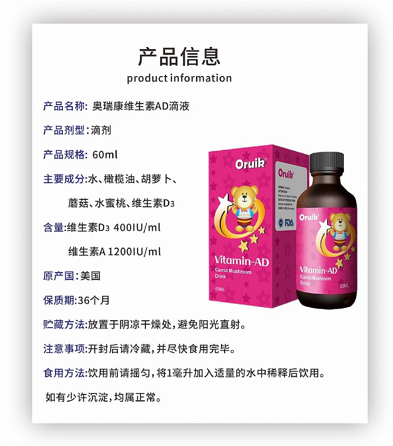 奧瑞康維生素AD滴劑(美國(guó)原裝進(jìn)口)