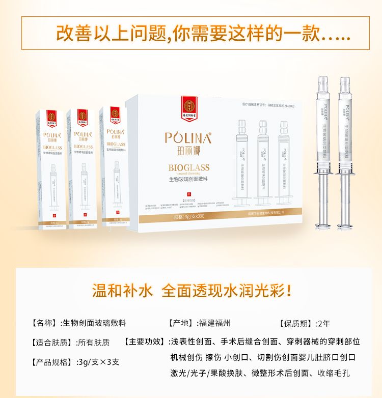| 補(bǔ)充說明 | [注意事項和提示性說明] 1.一旦出現(xiàn)過敏反應(yīng),應(yīng)停用本品。 2.用后一周癥狀無緩解,或出現(xiàn)局部紅腫、疼痛或其他不適癥狀時應(yīng)去醫(yī)院就診。 3.請將本品放在兒童不能接觸的地方。 4.使用前請仔細(xì)閱讀說明書,請在產(chǎn)品有效期內(nèi)使用。 5.如正在使用其他藥品,使用本品前請咨詢醫(yī)師或藥師。 6.使用后的產(chǎn)品按照醫(yī)院規(guī)定或環(huán)保要求處理。 7.本品適用于非慢性創(chuàng)面(如淺表性創(chuàng)面、手術(shù)后縫合創(chuàng)面、機(jī)械創(chuàng)傷、小創(chuàng)口、擦傷、切割傷創(chuàng)面、穿刺器械的穿刺部位、|度或淺I度的燒燙傷創(chuàng)面、嬰兒肚臍口創(chuàng)口、激光/光子/果酸換膚/微整形術(shù)后創(chuàng)面)的護(hù)理,為創(chuàng)面愈合提供微環(huán)境,促進(jìn)創(chuàng)面愈合。 [禁忌癥]對生物玻璃過敏者禁用。 [保存條件]常溫儲存。 [生產(chǎn)批號]、[生產(chǎn)日期]詳見產(chǎn)品包裝標(biāo)識。 [有效期]三年 [醫(yī)療器械注冊證/技術(shù)要求編號]閩械注準(zhǔn)20232140052 [醫(yī)療器械生產(chǎn)許可證編號]閩藥監(jiān)械生產(chǎn)許20230814號 |
