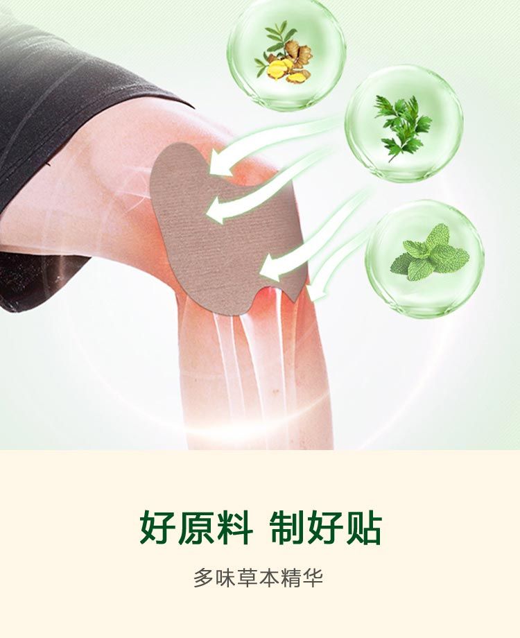 | 主要成分 | 本品將艾葉油、生姜油、桉葉油、冬青油、薄荷油等多種植物精華油為原料,加入熱熔膠,混合成膏,攤涂在無紡布上,經(jīng)切片、包裝而成的艾草膝蓋貼 |