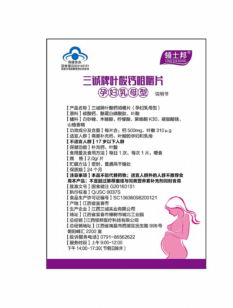 | 產(chǎn)品名稱 | 三誠牌葉酸鈣咀嚼片(孕婦乳母型) |