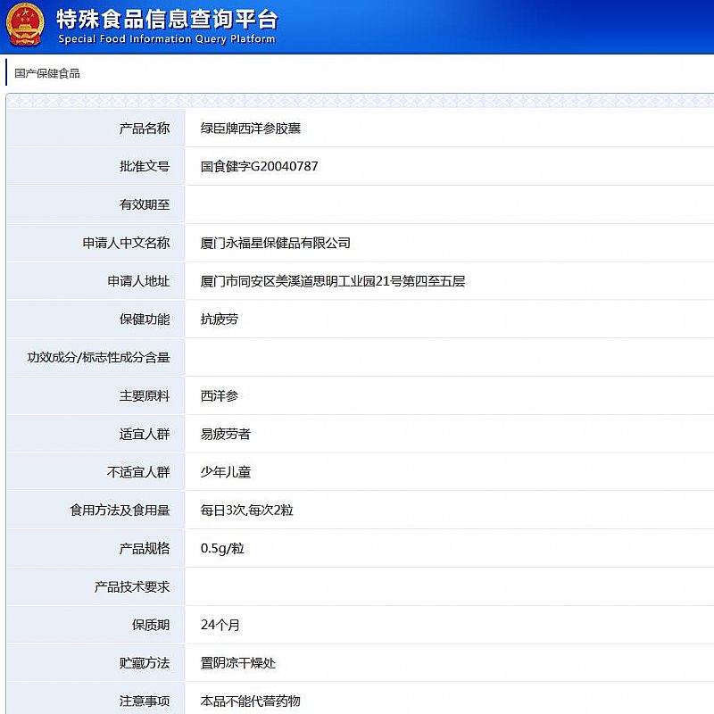 生產(chǎn)企業(yè): 廈門(mén)永福星保健品有限公司