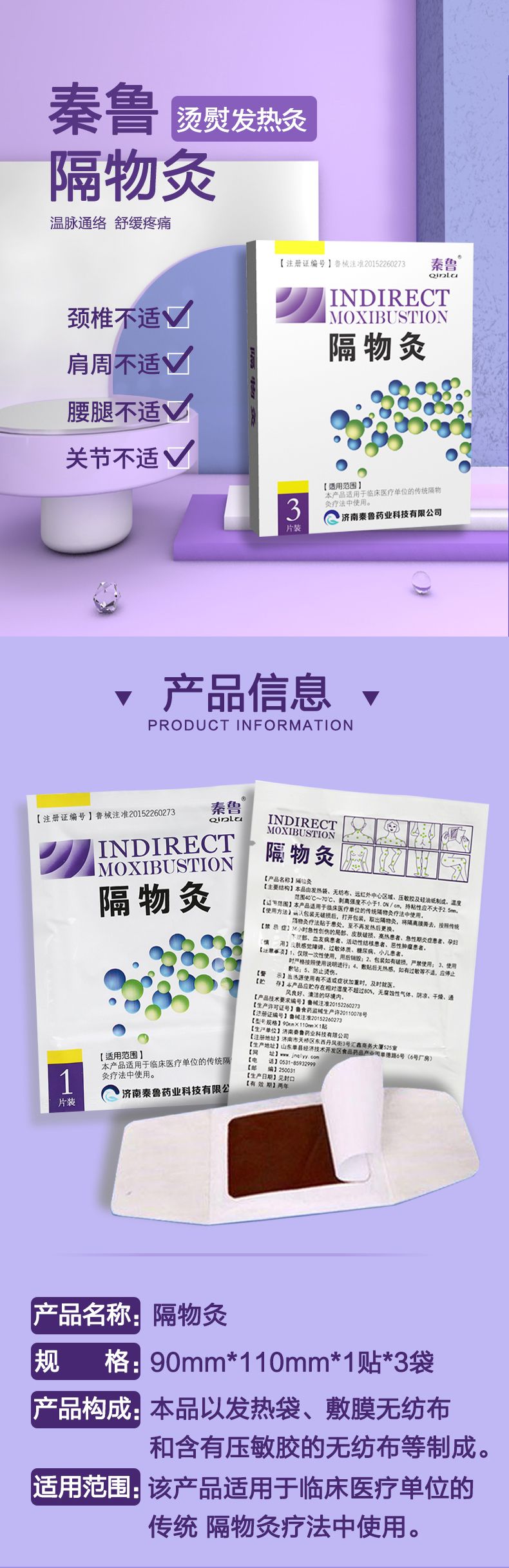 | 使用方法 | 確認(rèn)包裝無破損后,打開包裝,取出隔物灸,將隔離膜撕去,按照傳統(tǒng)隔物灸療法貼于患處,至不再發(fā)熱后更換。 |