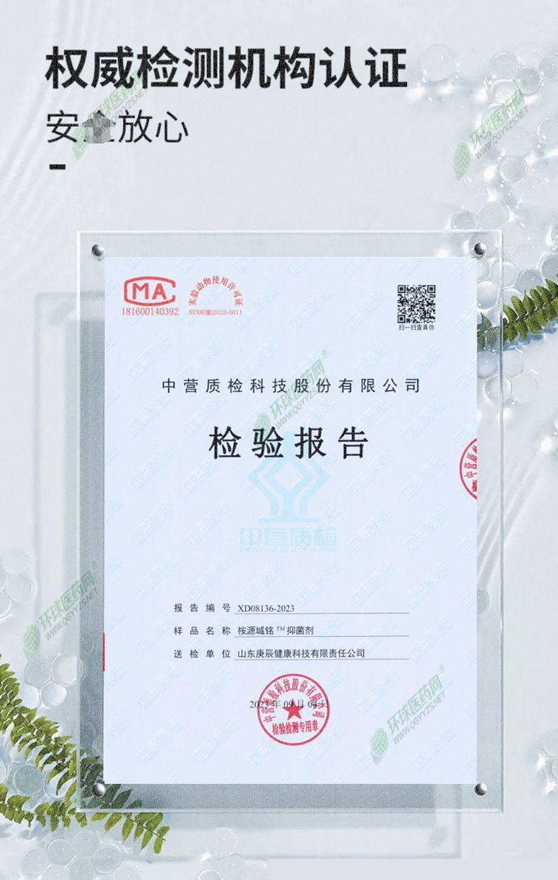 | 作用機理 | 桉源城銘抑菌劑經(jīng)權(quán)威機構(gòu)檢測驗證,對大腸桿菌,白色念珠菌,金黃色葡萄球菌,黑曲霉菌等的抑制率>99% 多次完整皮膚刺激性試驗。 |