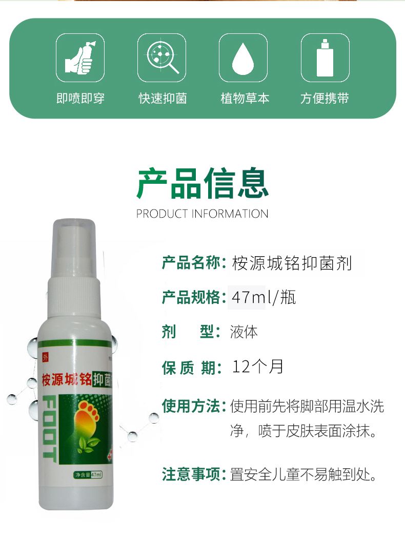 | 補充說明 | 適用于腳氣、腳臭,抑菌止癢。高效快速。 |