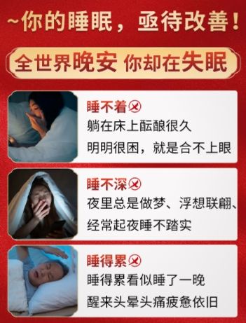 | 作用機理 | 雙向調(diào)節(jié):雙向調(diào)節(jié)人體大腦神經(jīng)遞質(zhì)濃度,使人體大腦興奮與抑制達到一個平衡點,**改善焦慮失眠、抑郁失眠、頑固性失眠等癥狀,是解決失眠,精神障礙的天然良方。 標本兼治:通過減壓和提高免疫力來解決失眠問題,同時在改善睡眠時促使人體白細胞增多,淋巴細胞數(shù)量上升,巨噬細胞活躍,**提高人體免疫力。 因果套裝:從失眠者心理、生理、病理各個方面原因入手,進而消除由因致果的睡眠障礙,以內(nèi)養(yǎng)外,有效解除遞質(zhì)失衡,**提高睡眠質(zhì)量。 動靜結(jié)合:**解決過去只求晚上睡的著,白天沒精神的問題,真正做到晚上睡的著,白天精神好,睡、醒都安然。 |