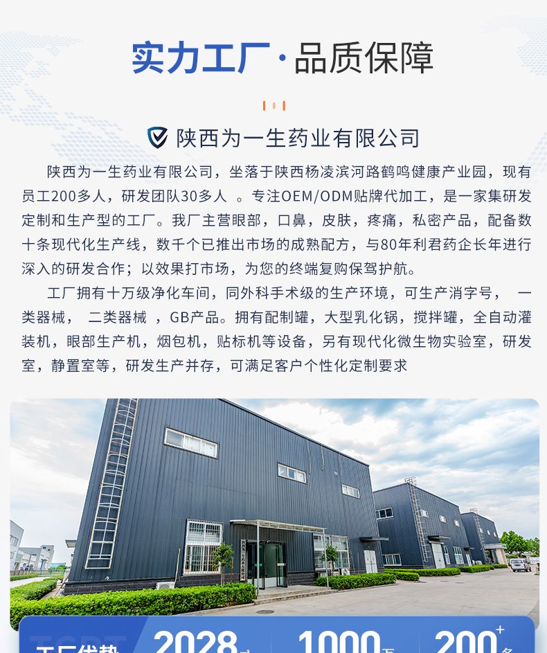 | 補(bǔ)充說明 | 臻漾年華薰衣草私處抑菌護(hù)理液,給你不同的私處護(hù)理體驗(yàn),含有天然薰衣草精華,能有效抑制金黃色葡萄球菌、大腸桿菌等有害菌群,保持私處健康。天然的薰衣草精油具有舒緩和鎮(zhèn)靜作用,可以緩解私處皮膚的不適感。溫和的清潔成分,能夠深層清潔私處,去除異味。陜西為一生藥業(yè)有限公司擁有先進(jìn)的生產(chǎn)設(shè)備和技術(shù),嚴(yán)格的質(zhì)量控制體系,確保每一款產(chǎn)品都高于市場標(biāo)準(zhǔn)。我們提供專業(yè)的OEM/ODM服務(wù),根據(jù)您的需求,為您量身打造屬于您自己的品牌產(chǎn)品?梢詾槟峁⿵漠a(chǎn)品設(shè)計(jì)、原料采購、生產(chǎn)加工到質(zhì)量檢測的全過程服務(wù)。我們承諾以優(yōu)質(zhì)的產(chǎn)品、合理的價(jià)格、快捷的服務(wù),讓您滿意。 |