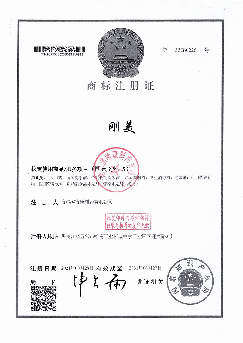 批準(zhǔn)文號(hào): 黑衛(wèi)消證字2020第0218號(hào)