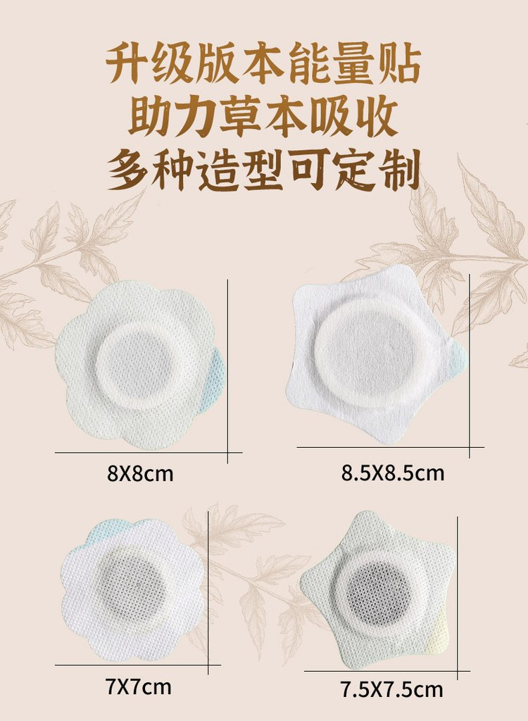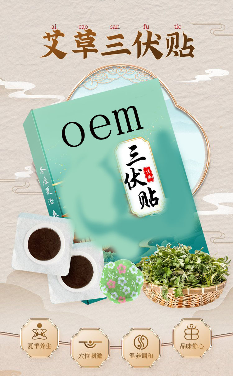 | 產(chǎn)品賣點 | 三伏貼/穴位壓力刺激貼/oem貼牌代加工三伏貼敷療法3~5年為一個療程。每年分為三個階段,即頭伏、中伏和末伏。一般每伏貼敷3次,每次貼4個穴位,即貼4片。兒童每次貼2~4小時,成人每次貼6小時。但根據(jù)個體差異、患者的病情,醫(yī)生會對貼敷時間、次數(shù)做適當調(diào)整。 |