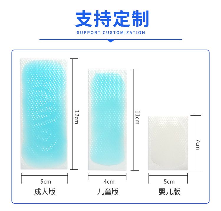 | 補充說明 | 產(chǎn)品用途 用于物理退熱、冷敷理療。僅用于閉合性軟組織。 主要成分 由無紡布背襯層、凝膠層、聚乙烯薄膜覆蓋層等部分組成。不應(yīng)含有發(fā)揮藥理學(xué)、免疫學(xué)或者代謝作用的成分。 使用方法 一天1-2次,可按個人需要使用,每貼使用8-12小時,換貼間隔1-2小時。使用時按缺口撕開包裝袋,取出貼劑,揭開透明薄膜,直接敷貼于額頭或患處?砂凑帐褂貌课淮笮〖粝率褂。剩余貼片應(yīng)密封保存。 更多 兒童退熱保健貼醫(yī)用退熱貼降溫貼軍訓(xùn)帖批發(fā)代理直供醫(yī)院藥店診所oem貼牌代加工 |
