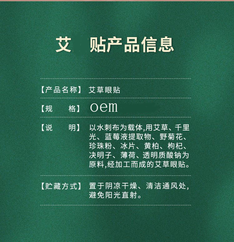 艾草眼貼緩解疲勞冷敷貼直供醫(yī)院藥店oem
