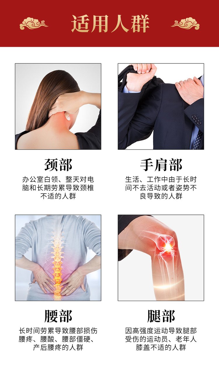 | 產(chǎn)品用途 | 適用于對(duì)頸椎病、肩周炎、骨質(zhì)增生、腰椎間盤突出、風(fēng)濕性關(guān)節(jié)炎、軟組織損傷的輔助治療。 |