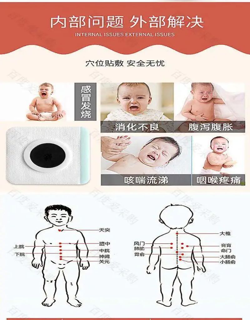 | 補充說明 | 更多 穴位壓力刺激貼定制定做肚臍貼批發(fā)代理廠家供貨OEM加工規(guī)格齊全 產(chǎn)品用途 本品針對人體特定穴位,對中醫(yī)穴位起刺激作用。 主要成分 本品由遠紅外陶瓷粉、丙烯酸壓敏膠、水刺無紡布、不銹鋼珠及離型紙制成。 作用機理 穴位貼敷治療貼的壓敏膠布剝離強度不小于1.0N/cm,持粘性應(yīng)不大于2.5mm,遠紅外發(fā)射波長范圍8um-15μm,法向比輻射率≥75%。 使用方法 1、清潔相應(yīng)穴位,先以拇指依次揉按相應(yīng)穴位,每穴1~2分鐘,范圍由小到大,力量由輕到重,探尋敏感點。2、確認包裝無破損后,打開包裝,取出穴位貼敷治療貼,將貼劑的隔離膜撕去,以鋼珠對準相應(yīng)穴位敏感點貼壓,1片/穴、天,每日適度按壓3~5次,每次3~5分鐘,1個療程為10天,療程間隔2~3天。 |