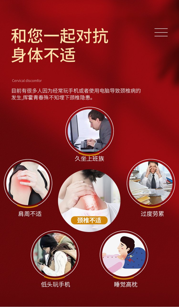 | 產(chǎn)品用途 | 產(chǎn)品用途QL-I綜合適用于對(duì)頸椎病、肩周炎、骨質(zhì)增生、腰椎間盤突出、風(fēng)濕性關(guān)節(jié)炎、軟組織損傷的輔助治療。QL-A型用于頸椎病的輔助治療。QL-B型用于肩周炎的輔助治療。QL-C型用于骨質(zhì)增生的輔助治療。QL-D型用于腰椎間盤突出的輔助治療。QL-E型用于風(fēng)濕性關(guān)節(jié)炎的輔助治療。QL-F型用于軟組織損傷的輔助治療 |