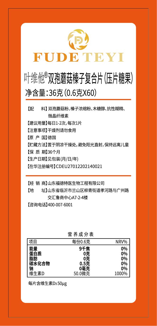產(chǎn)品名稱: 葉維他雙孢蘑菇榛子復(fù)合片壓片糖果(德國(guó)進(jìn)口)