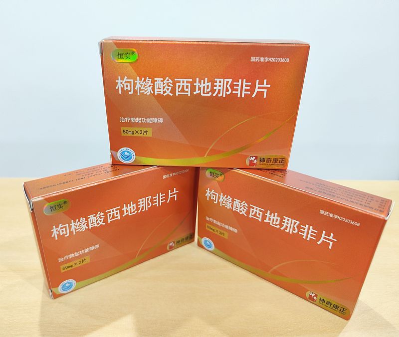 【藥理】本品是治療勃起功能障礙的口服藥物。它是西地那非的枸櫞酸鹽,一種環(huán)磷酸鳥苷(cGMP)特異的5型磷酸二酯酶(PDE5)的選擇性抑制劑。作用機制陰莖勃起的生理機制涉及性刺激過程中陰莖海綿體內(nèi)一氧化氮(NO)的釋放。NO激活鳥苷酸環(huán)化酶,導致環(huán)磷酸鳥苷(cGMP)水平增高,使得海綿體內(nèi)平滑肌松弛,血液流入。西地那非對離體人海綿體無直接松弛作用,但能夠通過抑制海綿體內(nèi)分解cGMP的5型磷酸二酯酶(PDE5)來增強一氧化氮(NO)的作用。當性刺激引起局部NO釋放時,西地那非抑制PDE5可增加海綿體內(nèi)cGMP水平,松弛平滑肌,血液流入海綿體。在沒有性刺激時,推薦劑量的西地那非不起作用。體外實驗顯示西地那非對PDE5具有選擇性。它對PDE5的作用遠較對其他已知的磷酸二酯酶強(是對PDE6作用的10倍,對PDE1作用的80多倍、對PDE2,PDE3,PDE4,PDE7,PDE8,PDE9,PDE10,PDE11作用的700多倍)。西地那非對PDE5的選擇性大約為對PDE3的4000倍,由于后者與心肌收縮力的控制有關,故該特點有重要的意義。西地那非對PDE5的作用約是對PDE6作用的10倍。PDE6是存