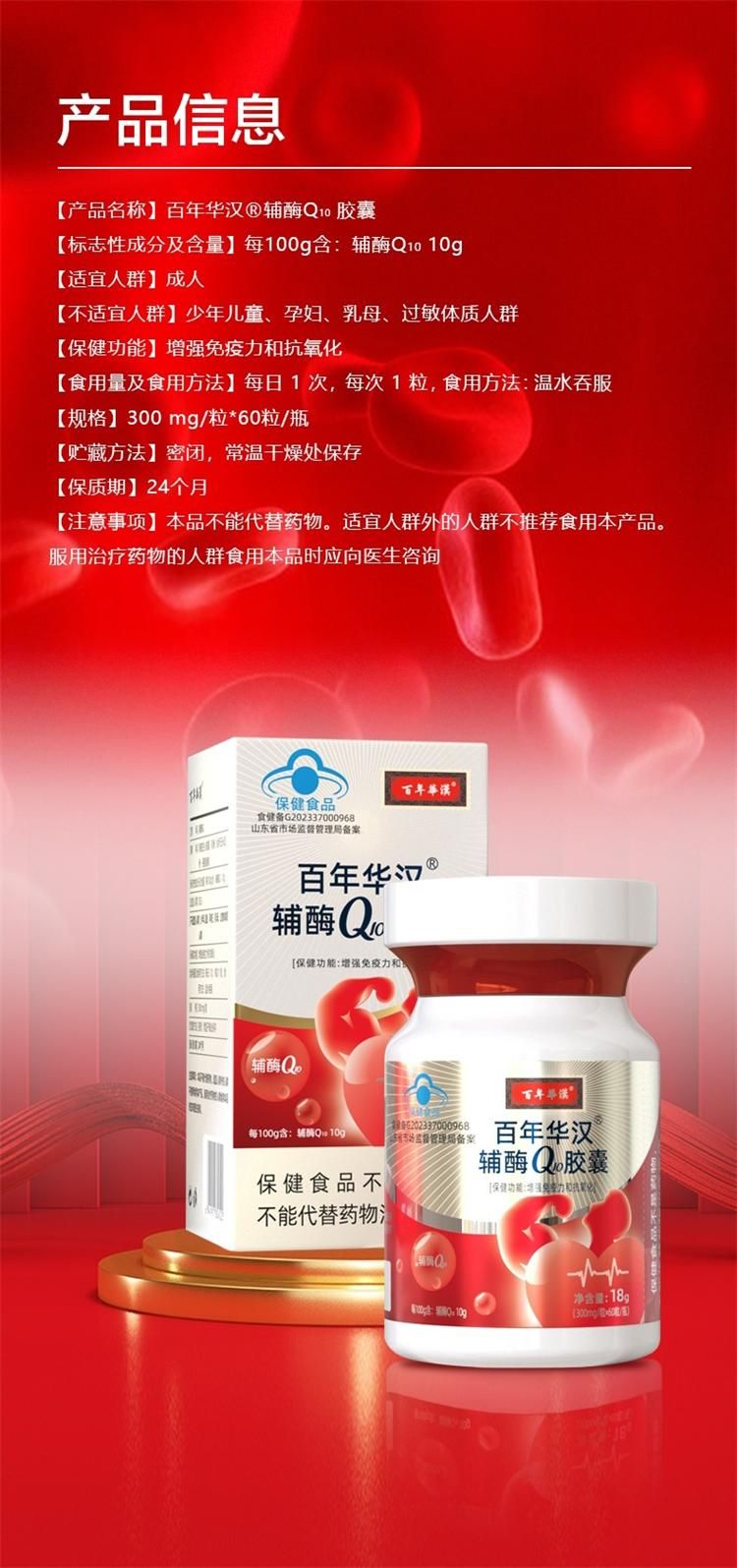 | 產(chǎn)品名稱 | 百年華漢輔酶Q10膠囊 |