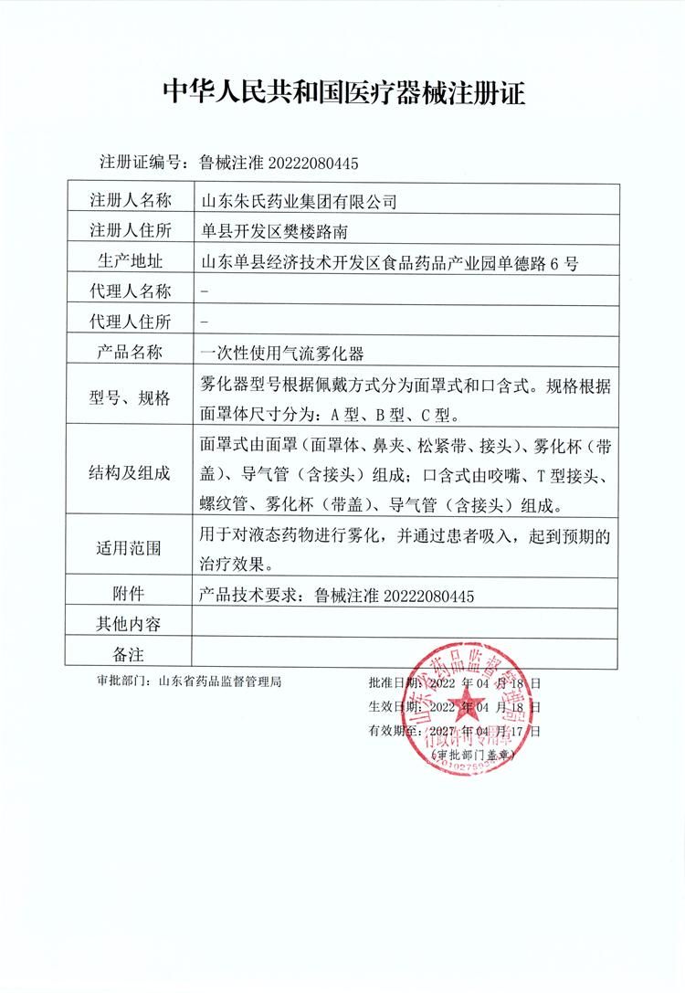 批準文號: 魯械注準20222080445 【驗證真?zhèn)?/a>】