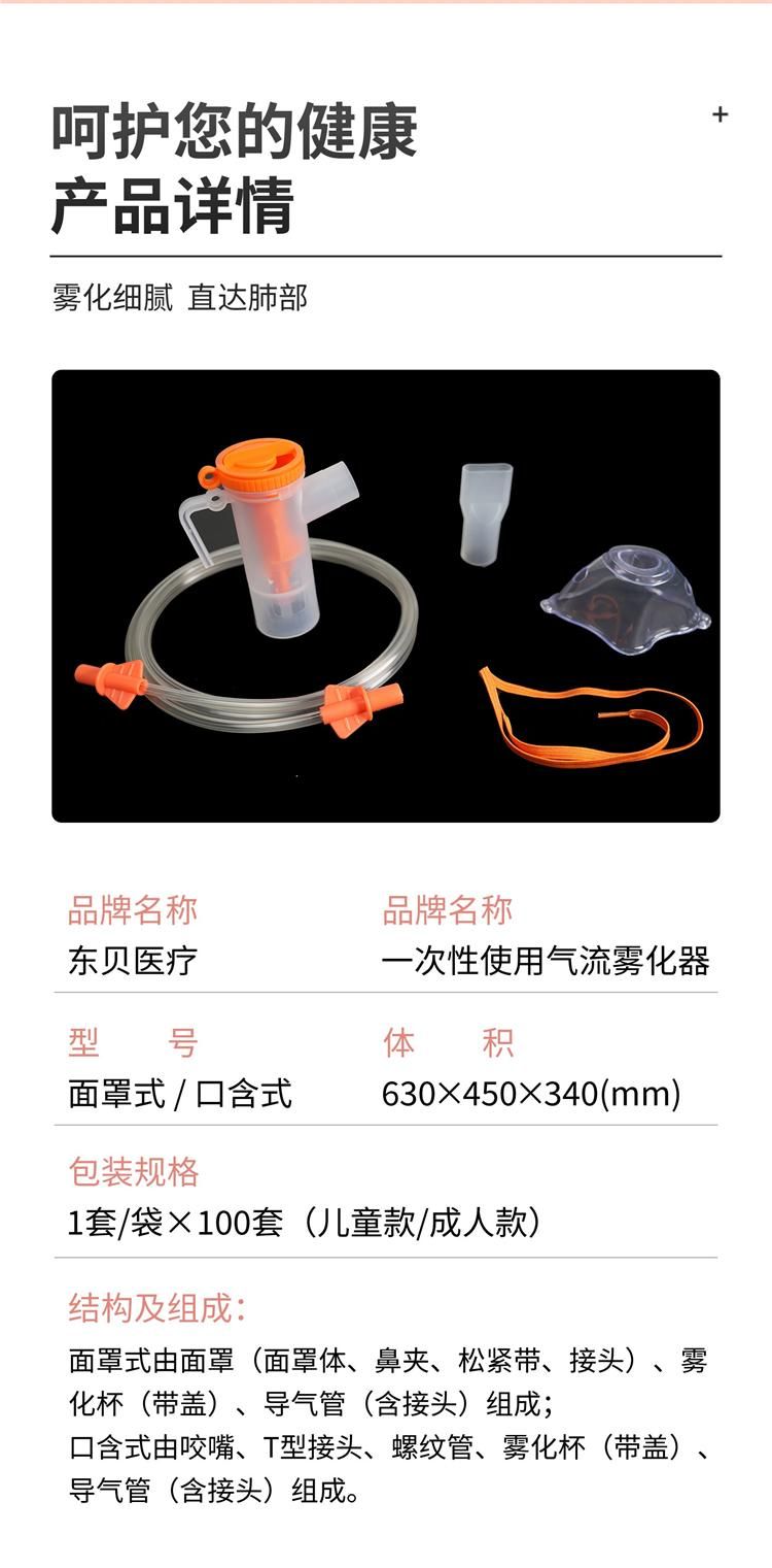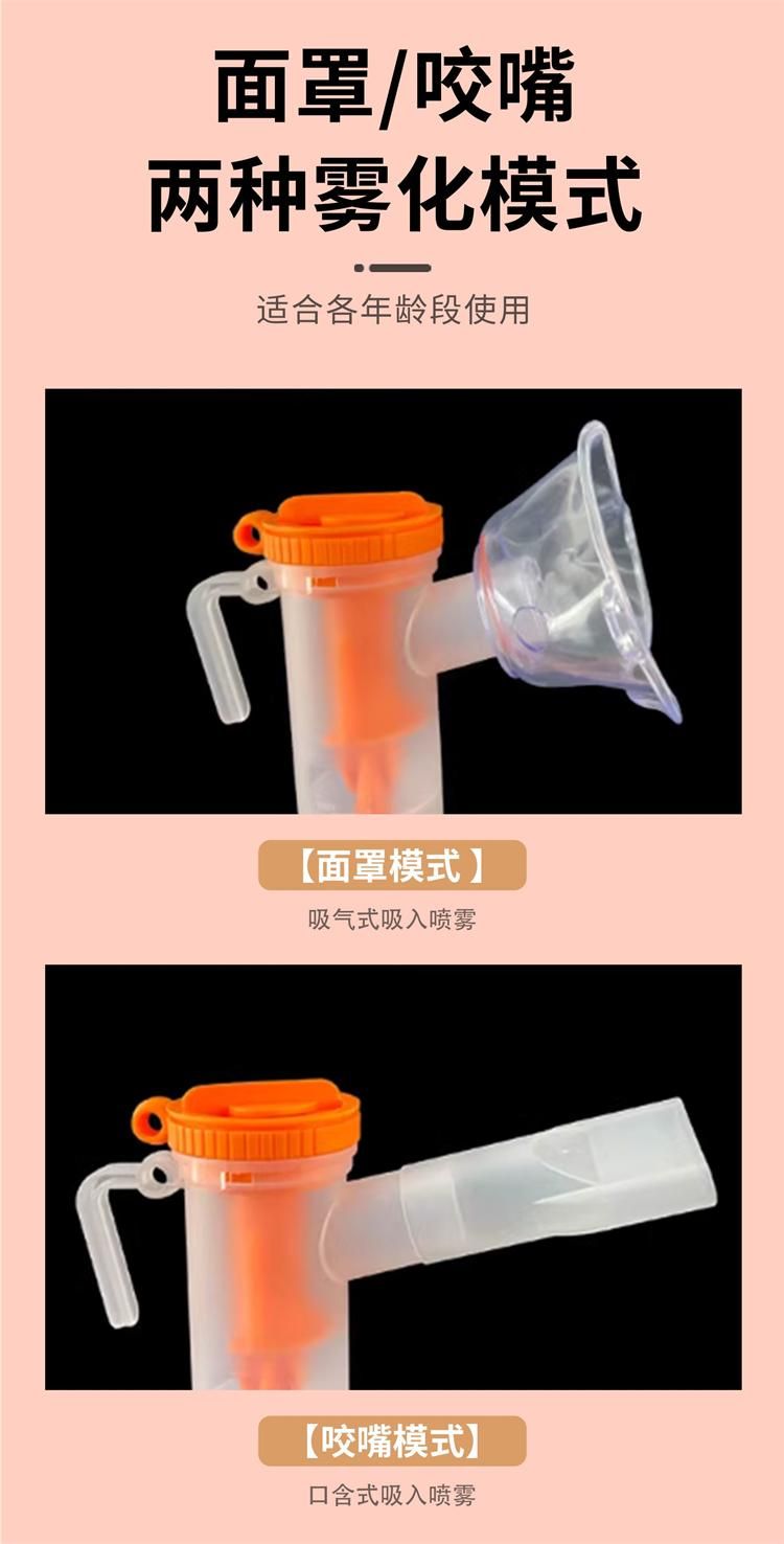 | 主要成分 | 面罩式由面罩、霧化杯、導氣管組成;口含式由咬嘴、T型接頭、螺紋管、霧化杯、導氣管組成。 |
