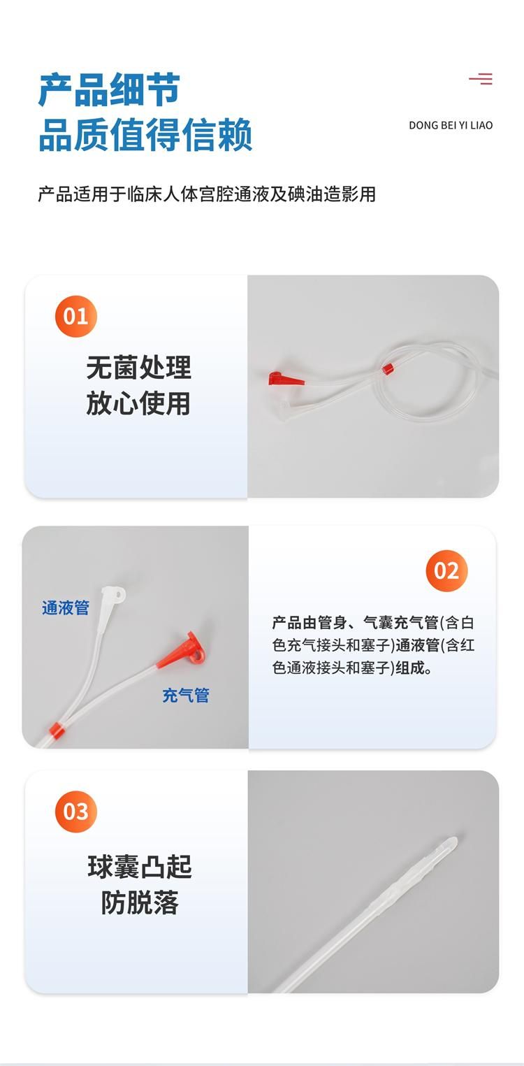 | 主要成分 | 一次性使用宮腔通液造影管由管身、氣囊、充氣管(含白色充氣接頭和塞子)、通液管(含紅色通液接頭和塞子)組成。| |