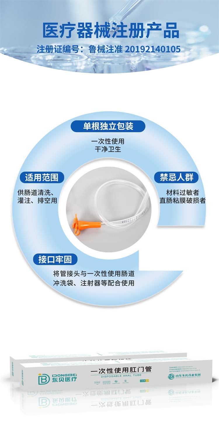 | 補充說明 | 【產(chǎn)品性能】試驗長度內(nèi)導(dǎo)管應(yīng)不發(fā)生打折現(xiàn)象;在不超過15N的力作用下,導(dǎo)管應(yīng)無斷裂,導(dǎo)管和連接器應(yīng)不分離;肛門管應(yīng)無菌。 【主要結(jié)構(gòu)組成或者成分】一次性使用肛門管采用醫(yī)用聚氯乙烯材料制成,由導(dǎo)管、接頭組成。 【適用范圍】供腸道清洗、灌注、排空用。 【注意事項、警示】 1.本產(chǎn)品僅限醫(yī)療機構(gòu)使用,未經(jīng)過專業(yè)培訓(xùn)的人員禁止操作使用; 2.本產(chǎn)品為無菌一次性使用產(chǎn)品,用后集中銷毀; 3.包裝一旦破損、漏氣,不得使用; 4.產(chǎn)品留置時間不超過24小時; 5.產(chǎn)品應(yīng)在有效期內(nèi)使用。 6.產(chǎn)品由醫(yī)用聚氯乙烯材料制成,不輸**物,輸送生理鹽水、溫水或肥皂水,對人體健康無害。 【禁忌癥】1.材料過敏者禁用。2.直腸粘膜破損者禁用。 |