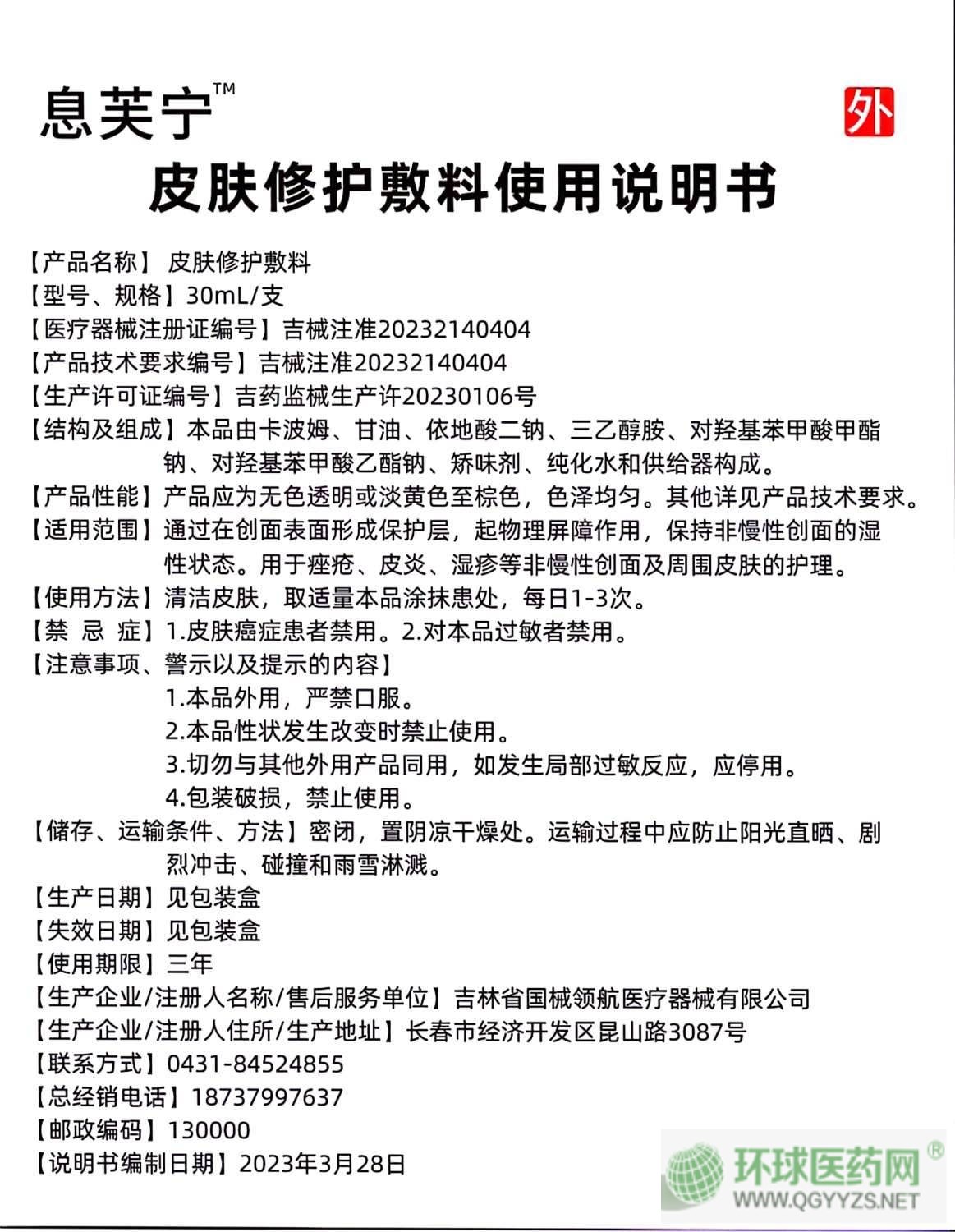 | 補(bǔ)充說明 | 息芙寧 皮膚修復(fù)敷料30 ml乳膏 **商品名 全國招商 【適用范圍】 舒緩泛紅 ,緩解瘙癢,修護(hù)皮膚屏障,減輕灼熱刺痛 緊繃等癥狀,減輕刺激 皺裂等**皮膚問題護(hù)理 , 寶寶,孕婦,成人皆可使用 適合全身大面積涂抹! 【使用方法]清潔皮膚,取適量本品涂抹患處,每日1-3次。 兒科,婦產(chǎn)科,皮膚科,外科,都可操作! 院內(nèi),藥房,診所,院外等! 控銷,不掛網(wǎng)銷售!一市一代,直接對(duì)準(zhǔn)個(gè)人! |