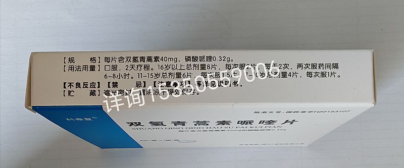 | 主要成分 | 雙氫青蒿素40mg,磷酸哌喹320mg。 |