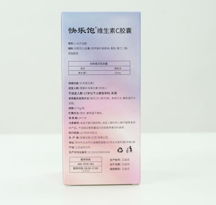 | 產(chǎn)品名稱 | 快樂飽®;維生素C膠囊 |