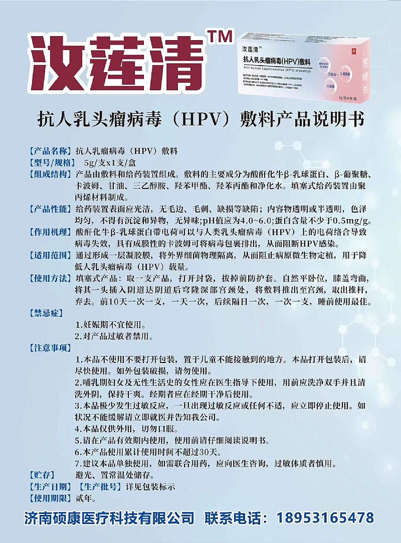 | 產(chǎn)品名稱 | 抗人乳頭瘤病毒(HPV)敷料 |