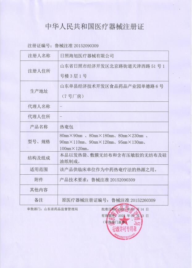 生產(chǎn)企業(yè): 日照海旭醫(yī)療器械有限公司