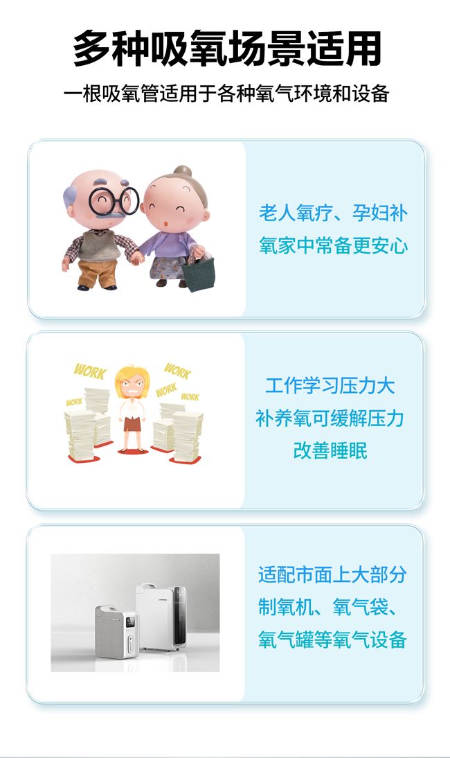 | 使用方法 | 1.根據(jù)臨床使用需求,選擇合適型號(hào)及長(zhǎng)度規(guī)格的鼻氧管;2.檢查產(chǎn)品包裝的完整性及有效期,打開(kāi)包裝;3.將鼻氧管的鼻塞放置于吸氧者鼻孔處,接頭與氧源接頭連接;4.確認(rèn)連接牢固后,即可進(jìn)行吸氧操作;5.使用過(guò)程中注意觀察吸氧者情況 |