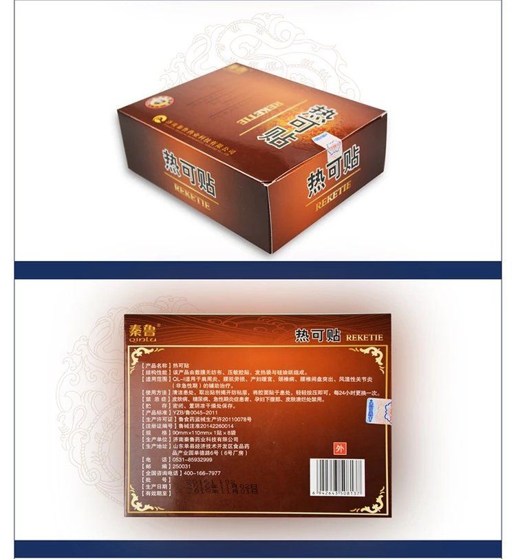 | 使用方法 | 清潔患處,確認(rèn)包裝無破損后,打開包裝,取出熱可貼,將貼劑的隔離膜撕去,貼于患處,每24小時(shí)更換一次 |