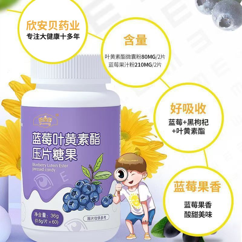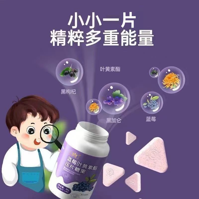 | 產(chǎn)品名稱 | 藍(lán)莓葉黃素韻壓片糖果 |