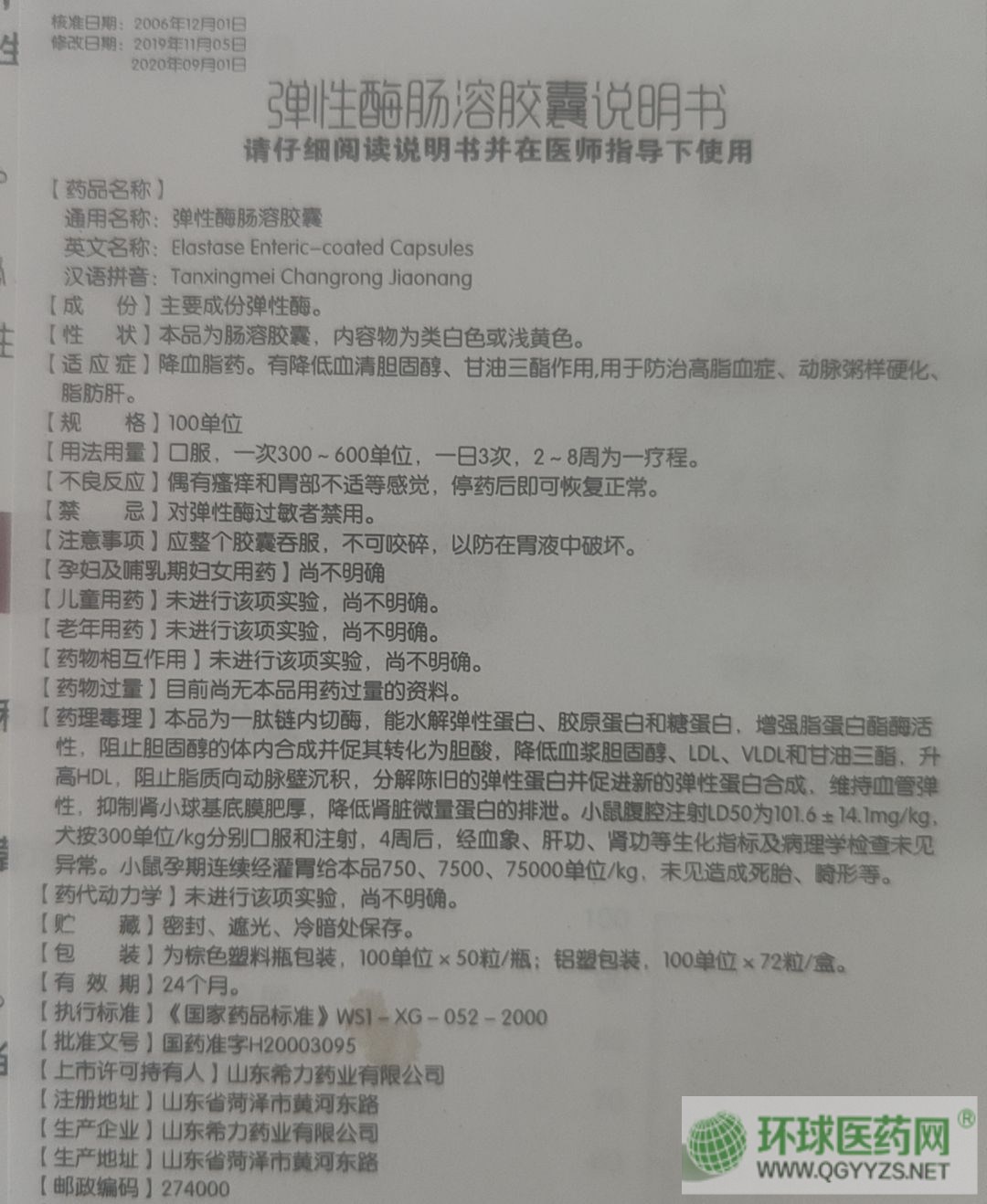 通用名稱: 彈性酶腸溶膠囊