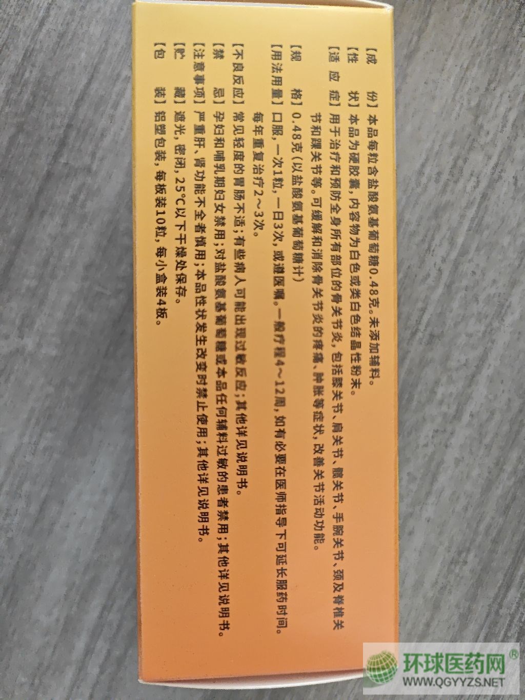 通用名稱: 鹽酸氨基葡萄糖膠囊