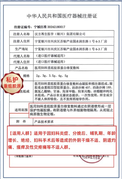 | 產(chǎn)品用途 | 適用于因婦科炎癥、分娩后、哺乳期、年齡增長(zhǎng)、絕經(jīng)、婦科手術(shù)后等造成的外陰干燥不適、陰道灼痛、瘙癢及性交疼痛等不適人群輔助治療 |