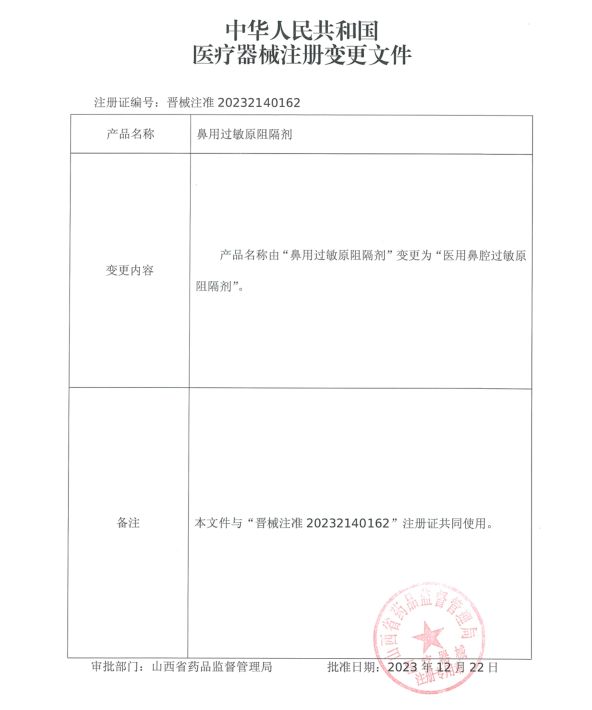 產(chǎn)品名稱(chēng): 醫(yī)用鼻腔過(guò)敏原阻隔劑