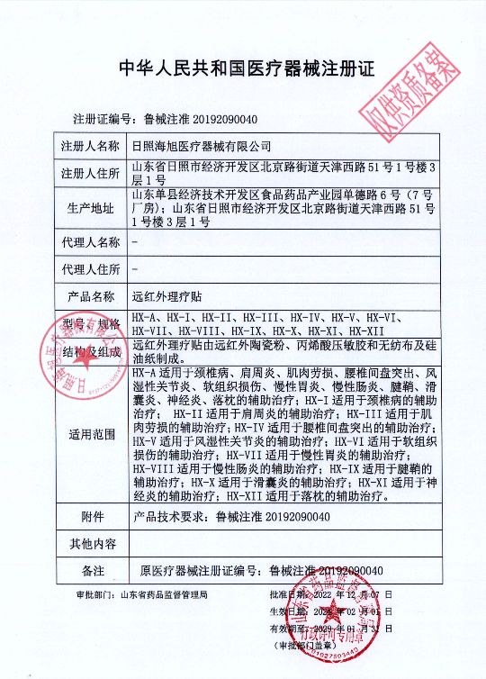 | 補(bǔ)充說明 | 遠(yuǎn)紅外理療貼,中標(biāo)掛網(wǎng)醫(yī)保,可供醫(yī)院,藥店,診所,理療店等渠道。 |