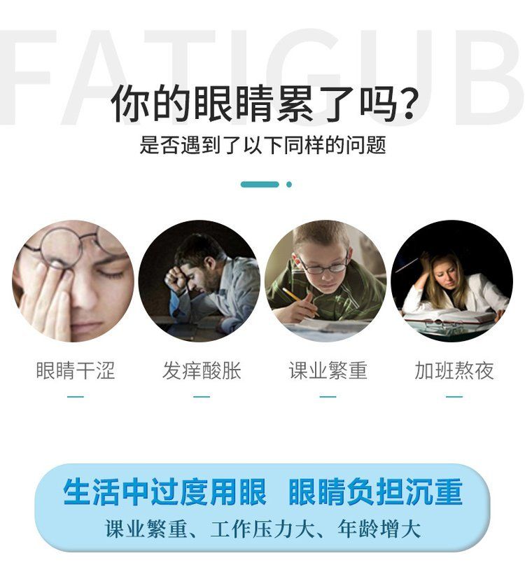 | 作用機理 | 中藥成分,按摩眼皮周圍使眼睛得到有效的放松,緩解疲勞 |