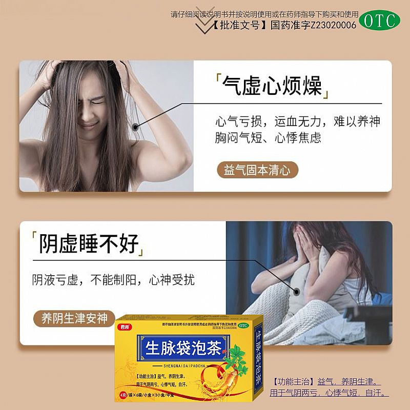 | 補充說明 | 嚴┊生脈袋泡茶 格┊國藥準字 (OTC) 控┊一托三精美套盒裝 銷┊以藥入茶以茶載藥 益氣斂汗×養(yǎng)陰生津×提高免疫力 |