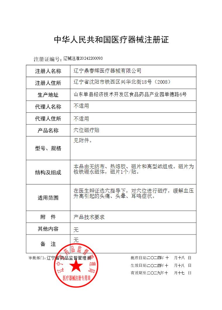 | 產(chǎn)品用途 | 在醫(yī)生辯證選穴指導(dǎo)下,對穴位進(jìn)行磁療,緩解血壓升高引起的頭痛、頭暈、耳鳴癥狀輔助治療 |