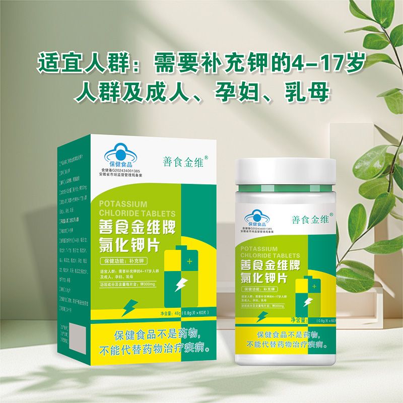 | 補(bǔ)充說(shuō)明 | 適宜人群:需要補(bǔ)充鉀的4-17歲人群及成人、孕婦、乳母 不適宜人群:3歲以下人群 |
