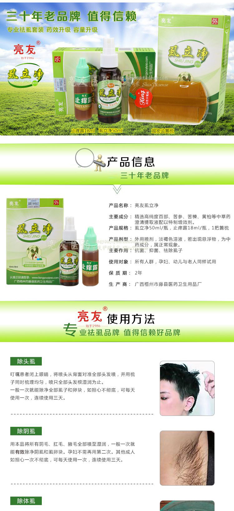 亮友牌虱立凈體虱陰虱頭虱虱卵止癢
