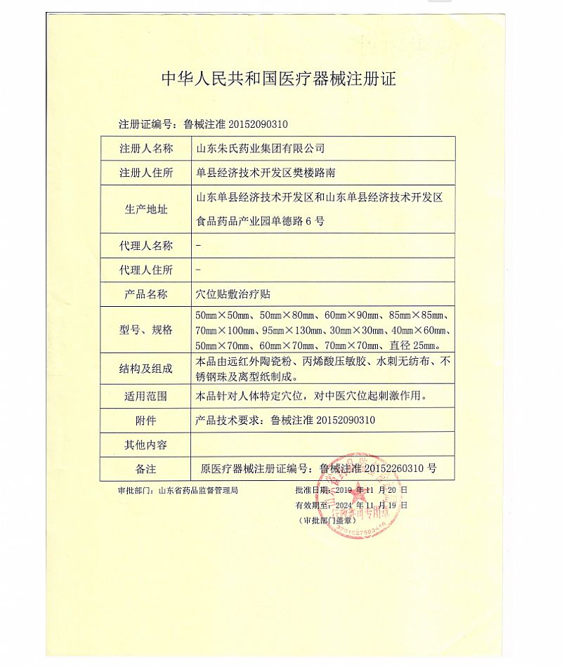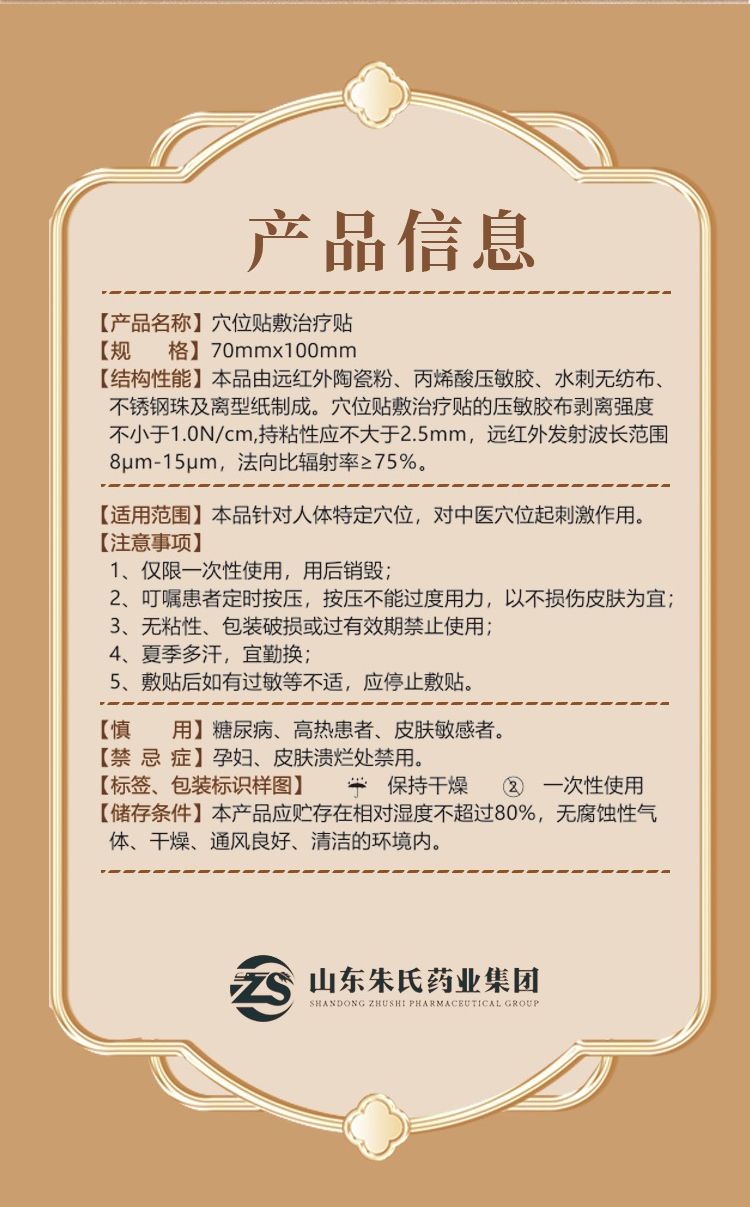 | 補(bǔ)充說(shuō)明 | 1、僅限一次性使用,用后銷毀; 2、叮囑患者定時(shí)按壓,按壓不能過(guò)度用力,以不損傷皮膚為宜; 3、無(wú)粘性、包裝破損或過(guò)有效期禁止使用; 4、夏季多汗,宜勤換; 5、敷貼后如有過(guò)敏等不適,應(yīng)停止敷貼 |
