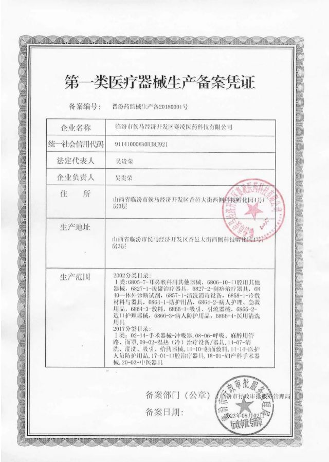 批準文號: 晉臨械備20230037號 【驗證真?zhèn)?/a>】