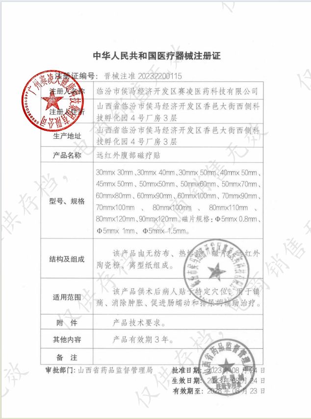 | 產(chǎn)品用途 | 該產(chǎn)品供術(shù)后病人貼于特定穴位,用于鎮(zhèn)痛、消除腫脹、促進(jìn)腸蠕動(dòng)和排尿的輔助治療。 |