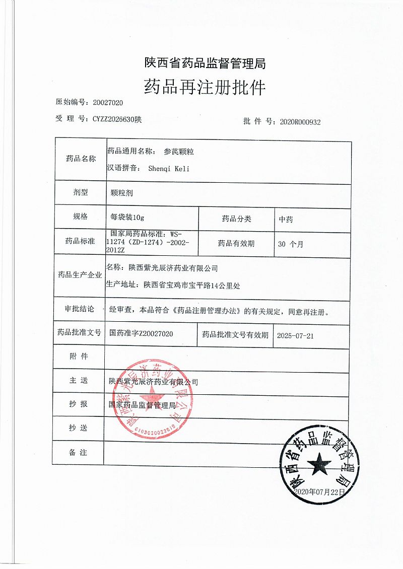 生產(chǎn)企業(yè): 陜西紫光辰濟(jì)藥業(yè)有限公司