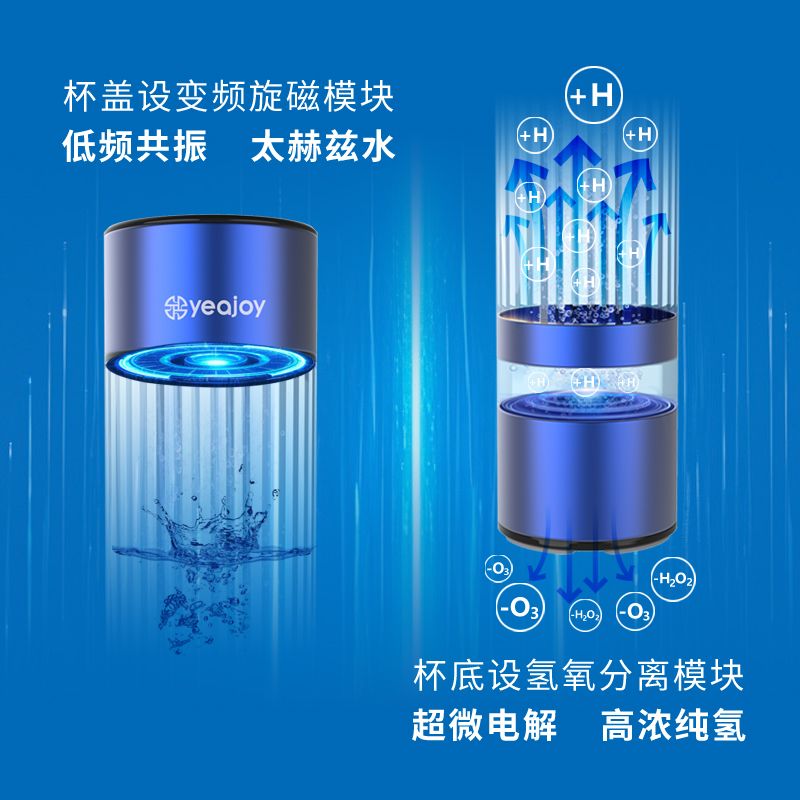 | 產(chǎn)品賣點(diǎn) | 1、可泡茶可為各類飲品注氫。 2、一杯雙能,上蓋有低頻共振儀,下底有氫氧分離儀,可制取富氫水、太赫茲水、富氫太赫茲水。 3、內(nèi)置高容鋰電、磁吸充電、動(dòng)態(tài)光效、鋁合金外殼。 |