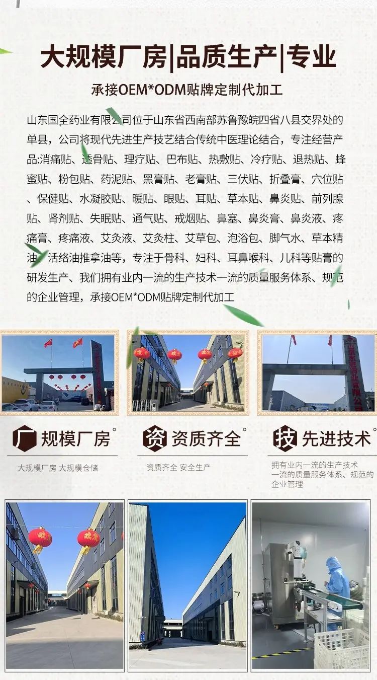 | 產(chǎn)品賣點(diǎn) | 起訂量小,資質(zhì)齊全。 上百種文號(hào)可供使用。 定制樣式多樣包括圓形貼、方形貼、異型貼、熱熔膠、發(fā)熱貼、退熱貼、凝膠類等上百種。 免費(fèi)打樣寄樣 可來樣來料代工。 可來廠廠參觀、現(xiàn)場(chǎng)談判! 出貨快,接急單。 優(yōu)質(zhì)售后服務(wù)。 |